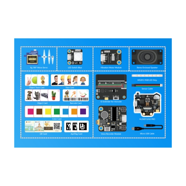 - Camera AI HuskyLens Pro tích hợp 8 chức năng nhận diện AI sẵn có, bao gồm: nhận diện khuôn mặt, màu sắc, vật thể, mã vạch, QR code, theo dõi đối tượng, giúp bạn hiện thực hóa các ý tưởng sáng tạo một cách nhanh chóng.