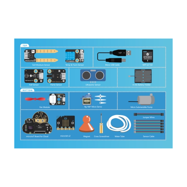 Bộ học tập STEM IoT cơ bản Micro:bit bao gồm các thành phần sau: